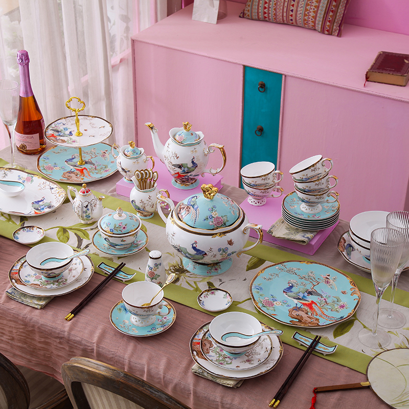 Light extravaganza Tidal Bones Porcelain Palace Porcelain Cutlery Sets Porcelain Home High Face Value Chinese Light Lavish Dishes Disc Joco transfer gifts