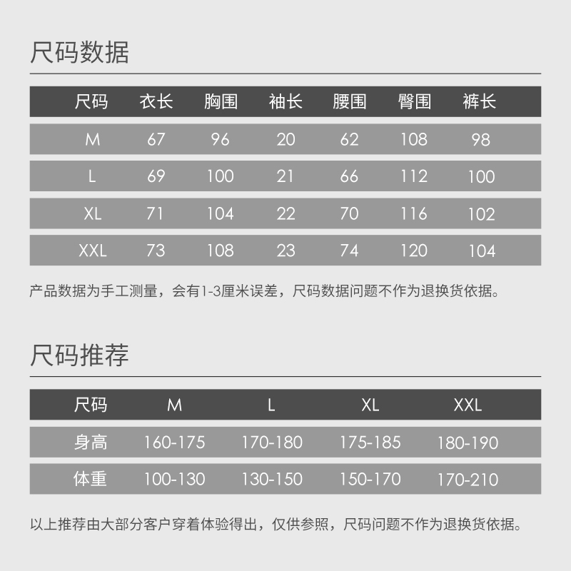 M (recommended for weight 100-130 catty) L (recommended for weight 130-150 catty) XL (recommended for weight 150-170 catty) XXL (recommended for weight 170
