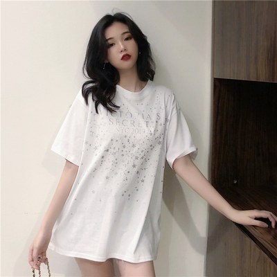 2020 loose large size t-shirt short-sleeved women's summer new Korean version of flash printing all-match solid color simple half-sleeved top