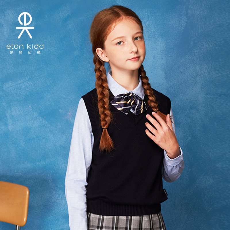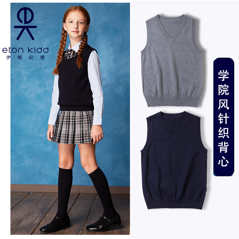 N Eaton Gide school uniform boys and girls Spring and Autumn V - collar sweater children's vest wear vest knitting 17B009