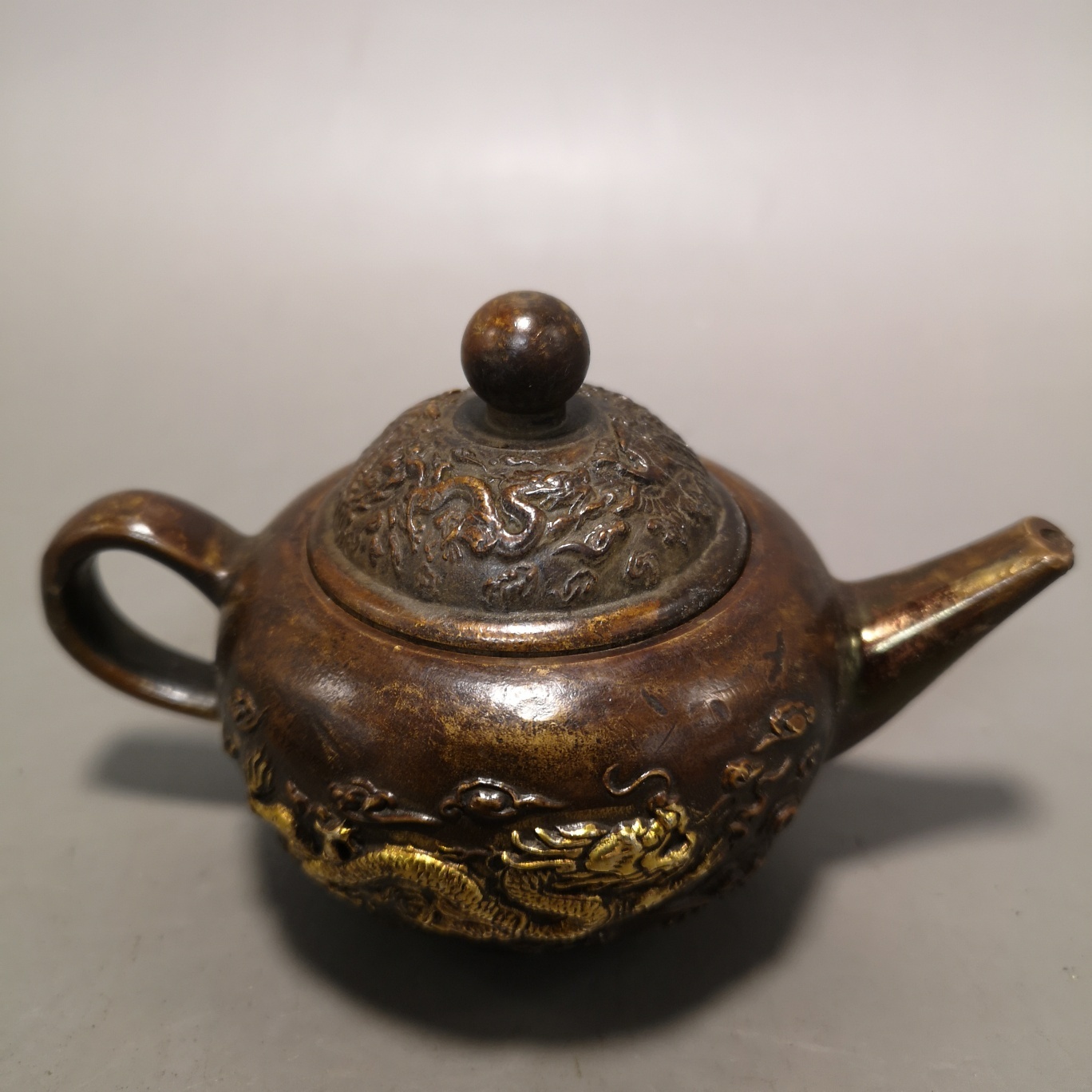 Ancient Play Miscellaneous Pure Copper and Golden Dragon Pinewine Pot workmanship Consummate Berry-Road Collection Furnishing Excellent