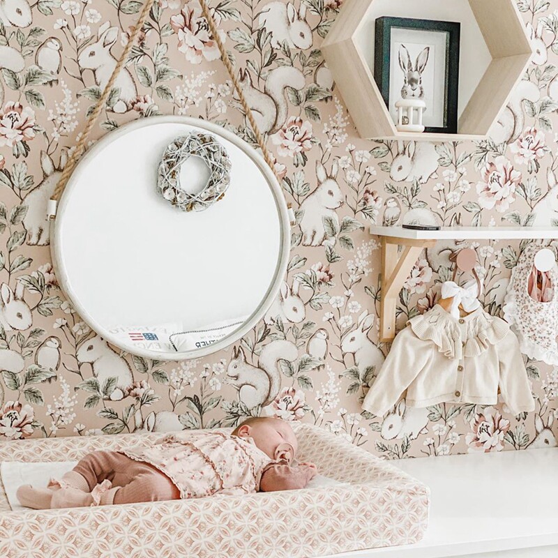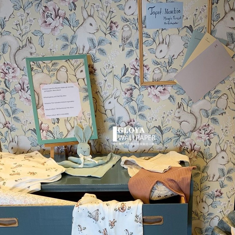 Spot NEWBIE newborn Swedish imported children's room wallpaper Nordic Forest squirrel rabbit background wallpaper