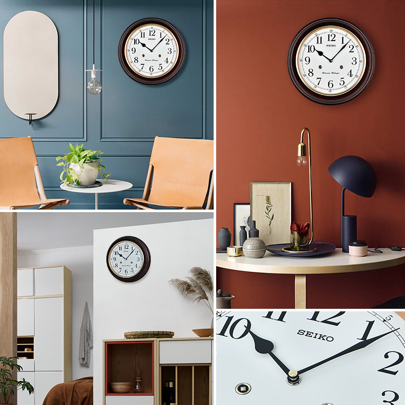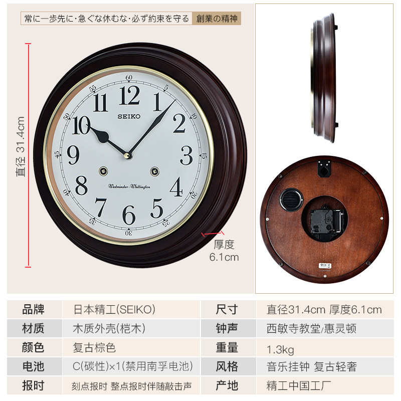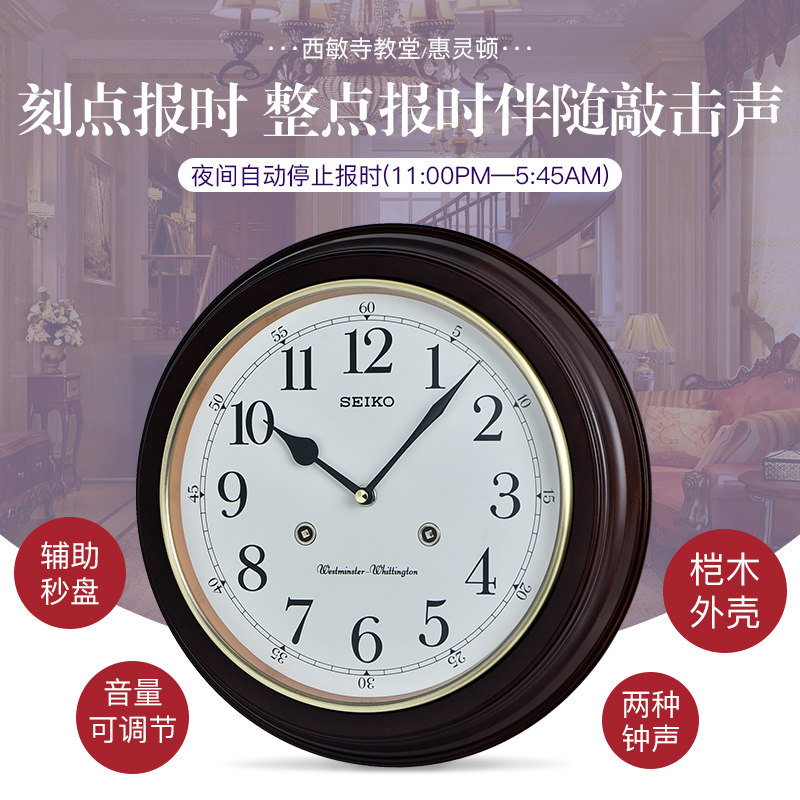 SEIKO Japan Seiko solid wood clock hour music chime European vintage simple living room bedroom wall clock