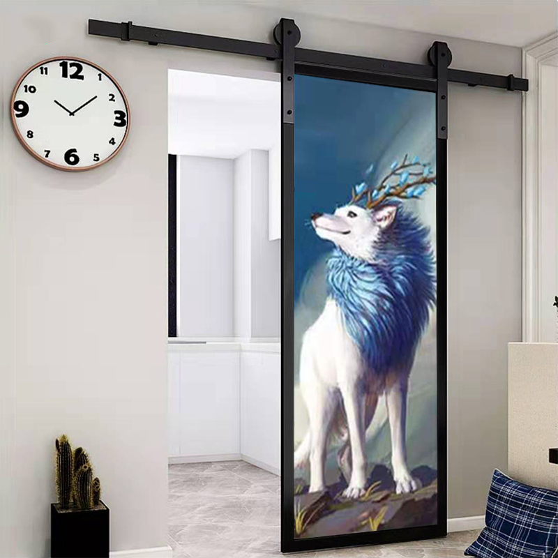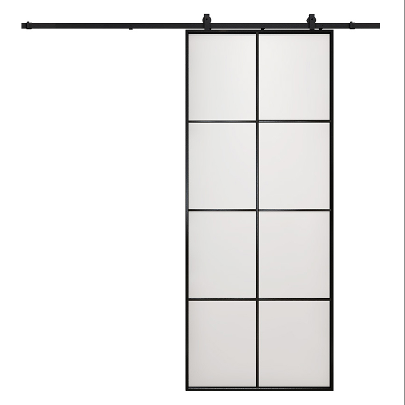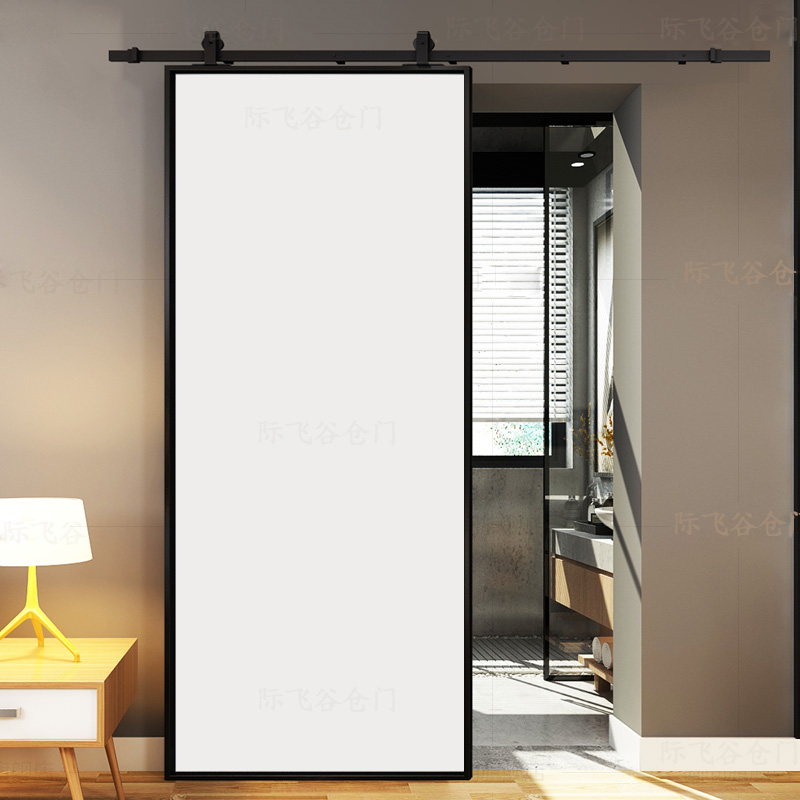 Minimalist aluminum alloy glass barn door Hanging wheel door Powder room sliding door Bathroom sliding door Bedroom kitchen warehouse door
