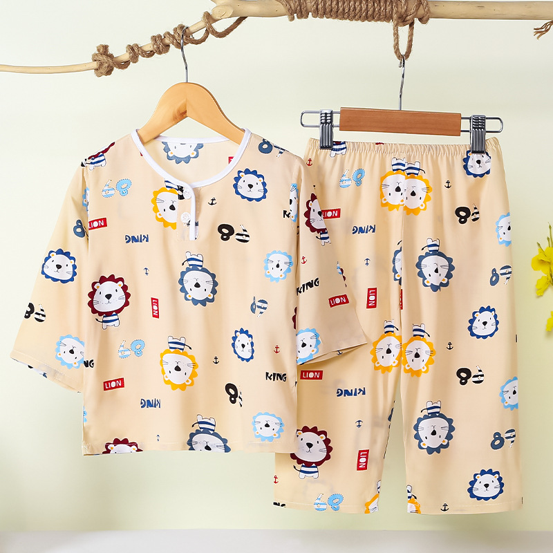 Children Cotton Silk Sleeping Clothing Thin summer Miansilk boy girl baby Long sleeve cool suit kid air conditioning suit