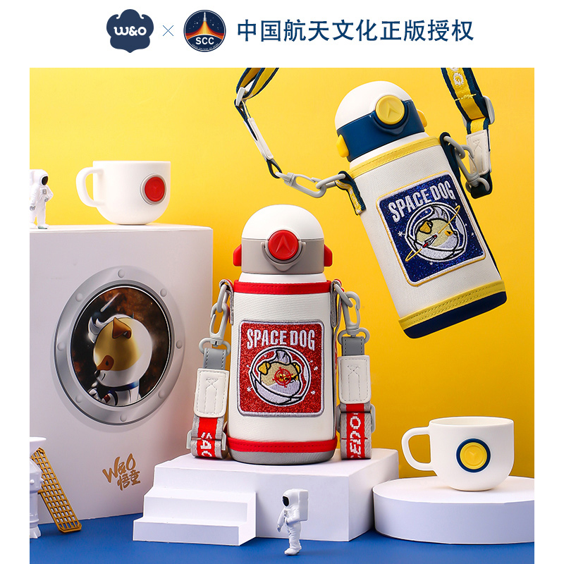 WO space dog Xiaopao children's water cup Thermos cup with straw dual-use kindergarten male and female kettle primary school students