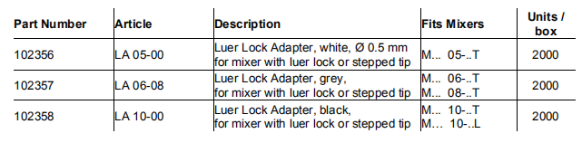 LA05-00 LA05-00 LA06-08 LA10-00 LA10-00 imports MIXPAC hybrid tube adapter needle adapter