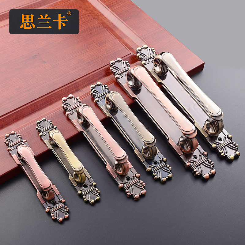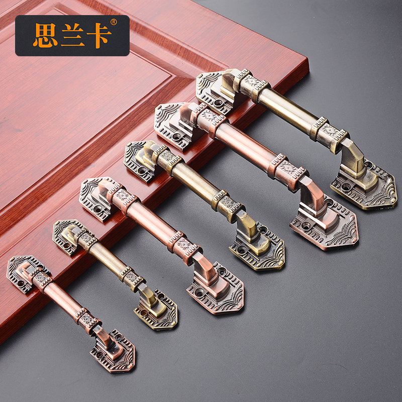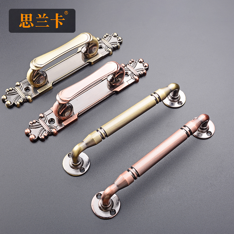 European-style antique copper exposed handle green red bronze retro handle wooden push-pull door handle invisible door handle