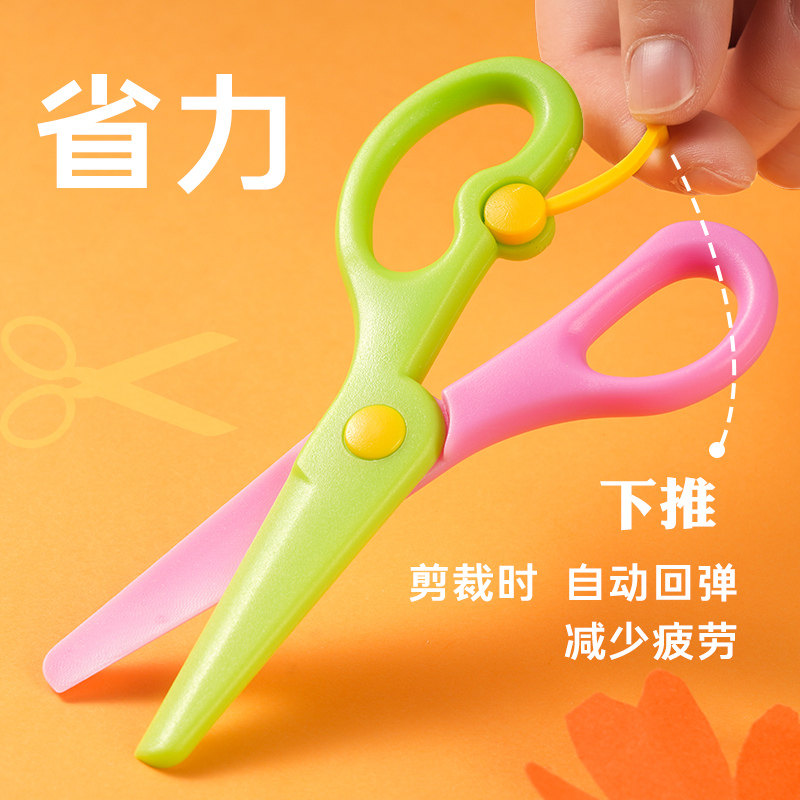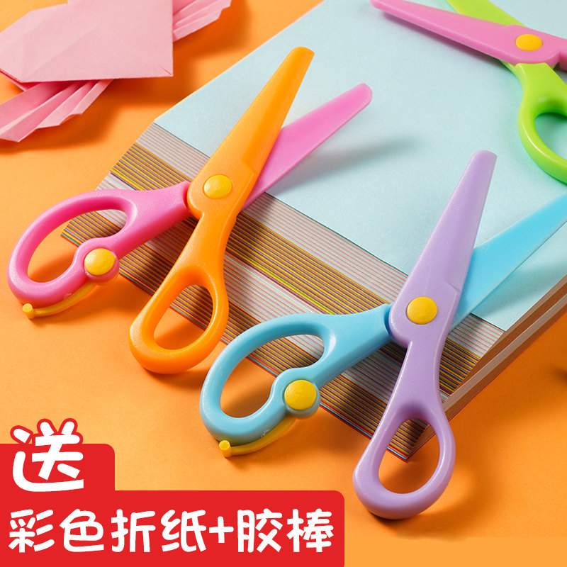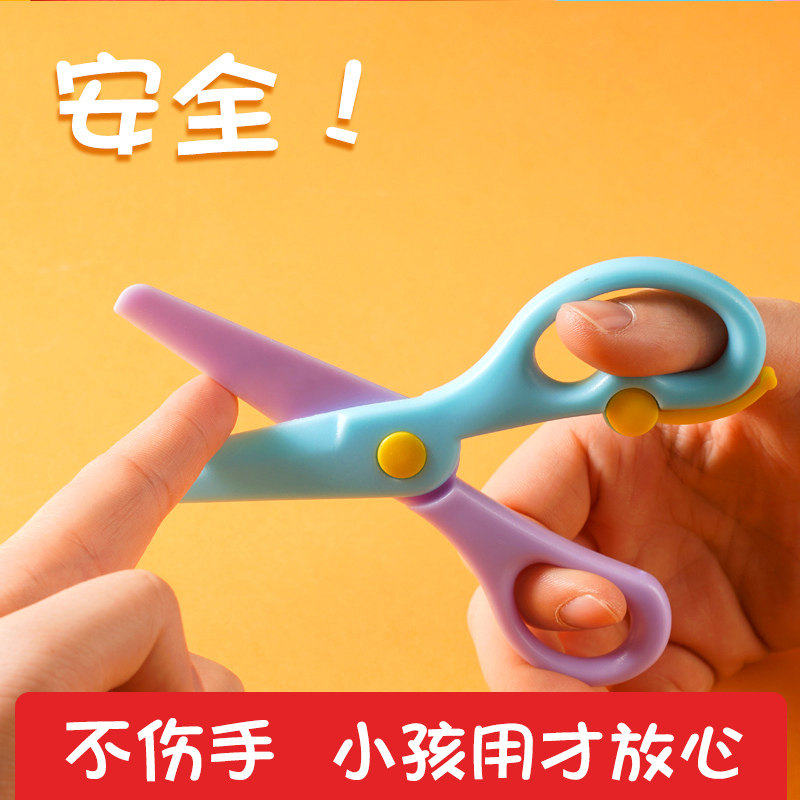 Kindergarten plastic handmade primary school students small scissors Children's paper-cutting special safety art Baby children's suit toys do not hurt the hand Children's art simple round head primary school art class
