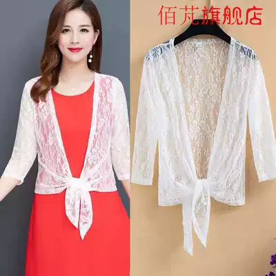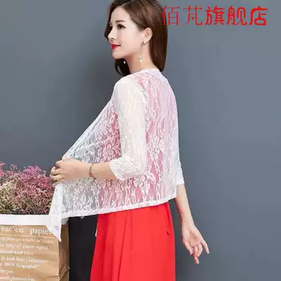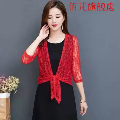 Small shawl women wear short lace hollow waistcoat three-quarter sleeve jacket outside wear large size thin jacket women