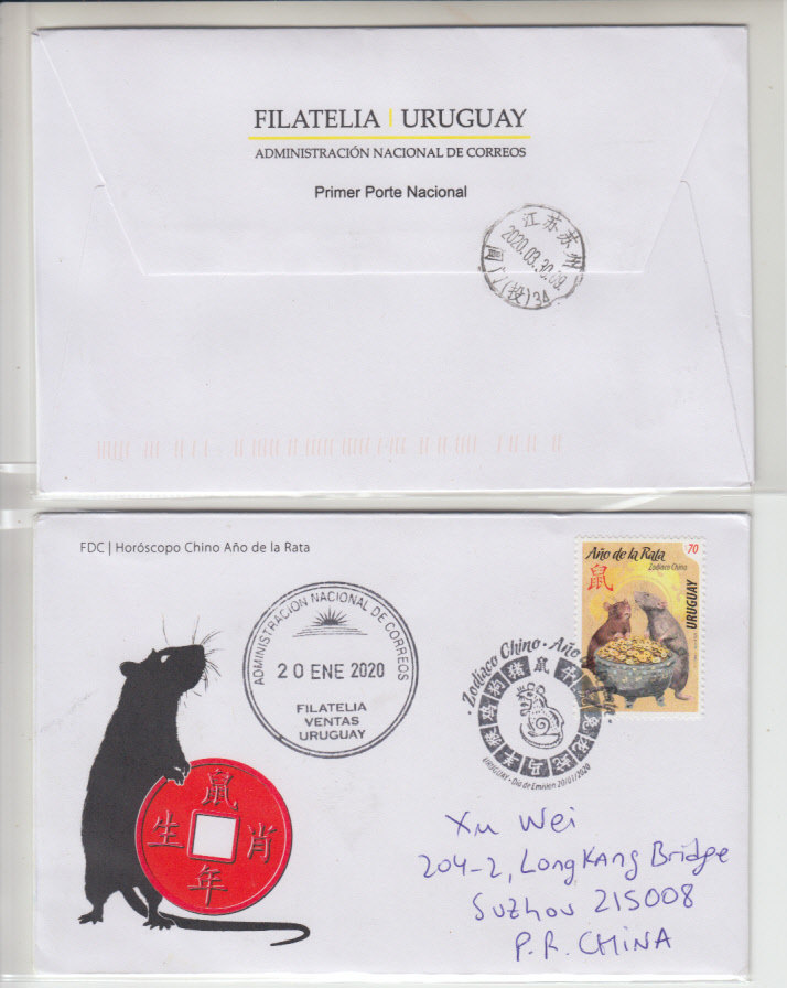 Uruguay 2020 stamps on the first day of the year on the first day of the year, with a stamp on the ground