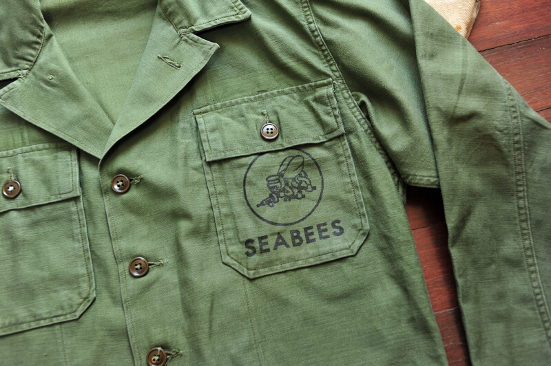Ancient Good Pink Vietnam Early SEABEES Pocket Oil Print OG107 Flat Pocket Pure Cotton Jacket S Number