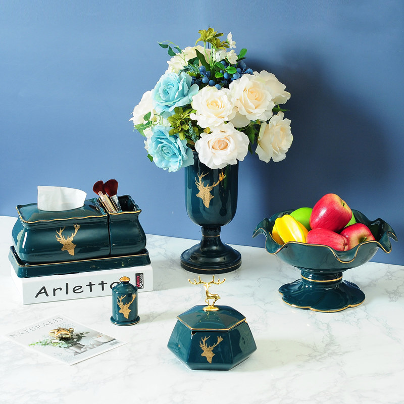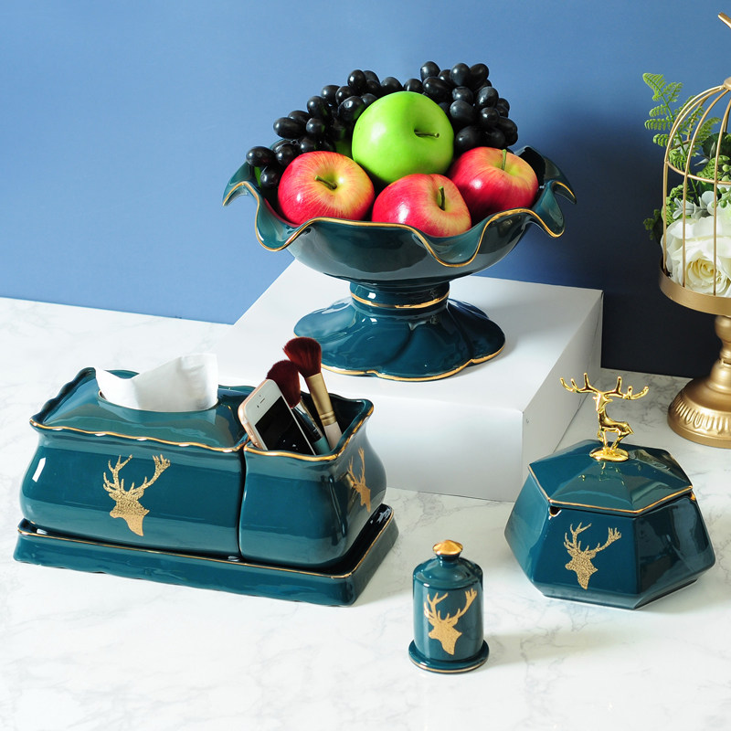 Nordic ins living room coffee table set ceramic three-piece fruit bowl ashtray tissue box new home move gifts