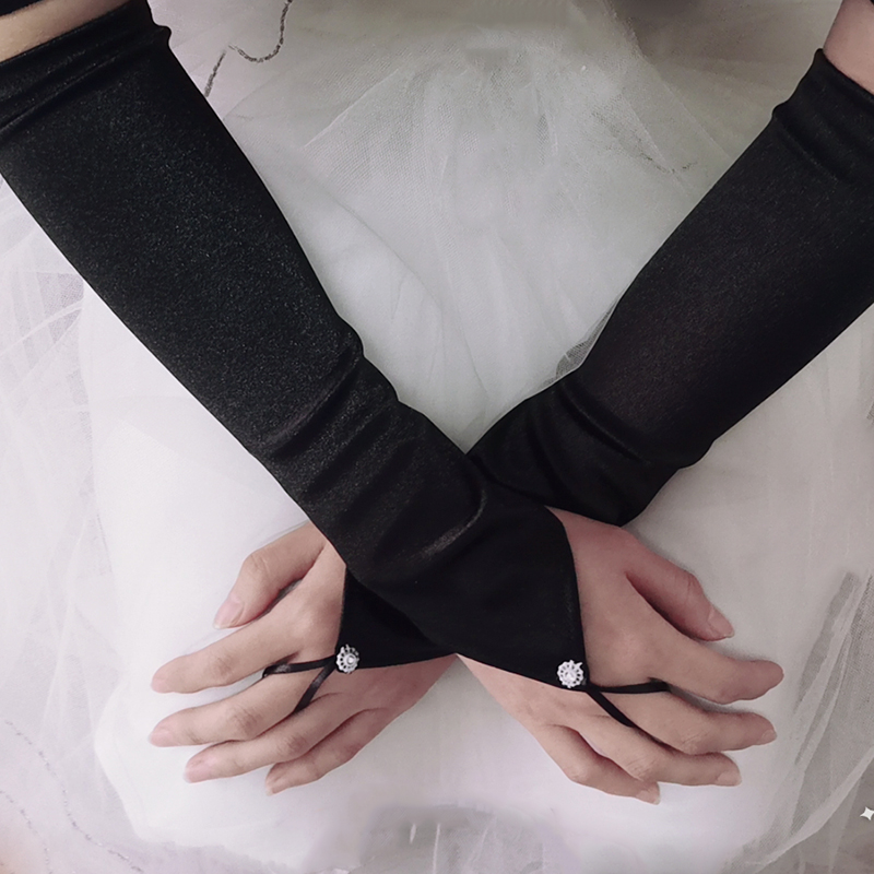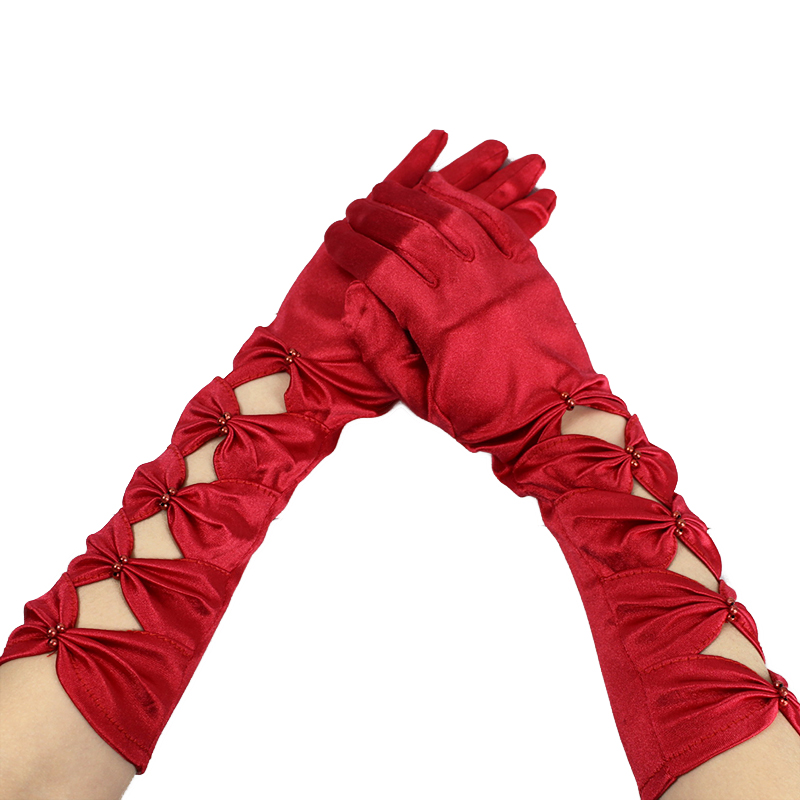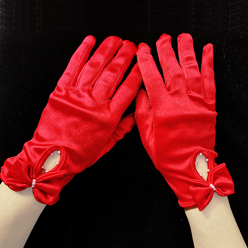 Bridal red satin high-end wedding gloves wedding wedding dress gift instrument social gloves breathable mid-length version
