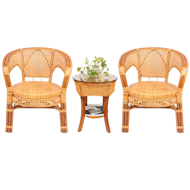 Living room rattan chair elderly back chair tea table short three-piece set balcony outdoor leisure chair small coffee table combination