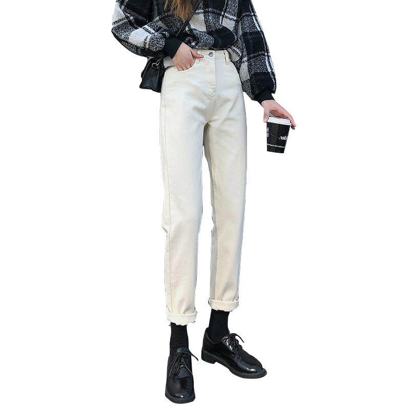Japan SLY white high-waisted jeans women loose 2020 spring and summer new thin straight nine-point pants