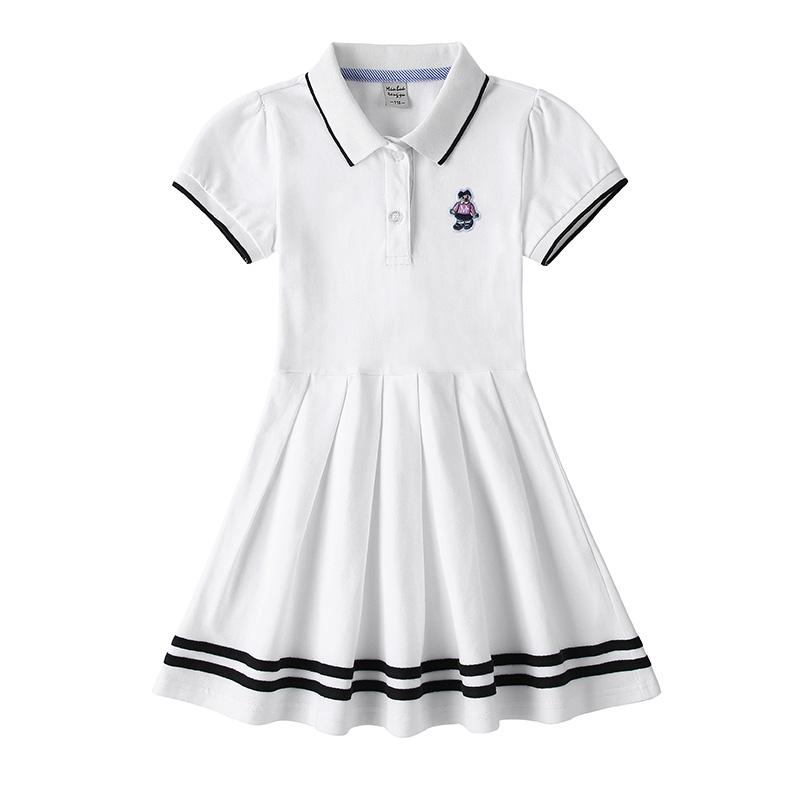 Girls' dress cotton summer dress children's baby college wind Polo skirt primary school students summer girl pleated skirt