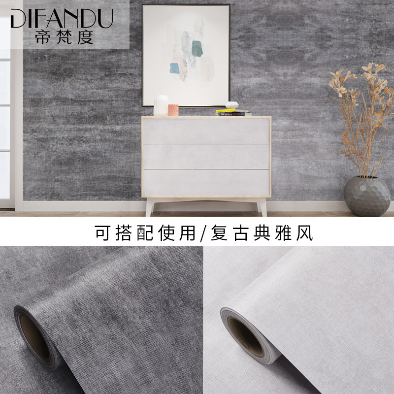 Modern minimalist cement grey wallpaper Self-sticking vegetarian colour Bust Living room Retro Industrial Wind wallpaper Clothing Shop Hair Salon