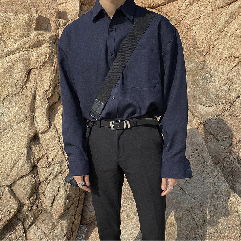 Bishe men's 2020 spring new solid color port wind stand-up collar trend long-sleeved Korean loose shirt men's shirt