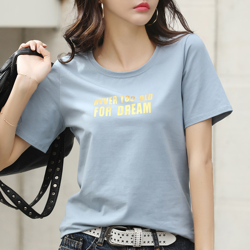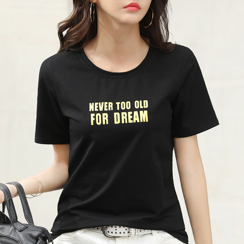 Short sleeves 2022 new summer white T - shirt dress round collar edition loose fashion black half - sleeve tops