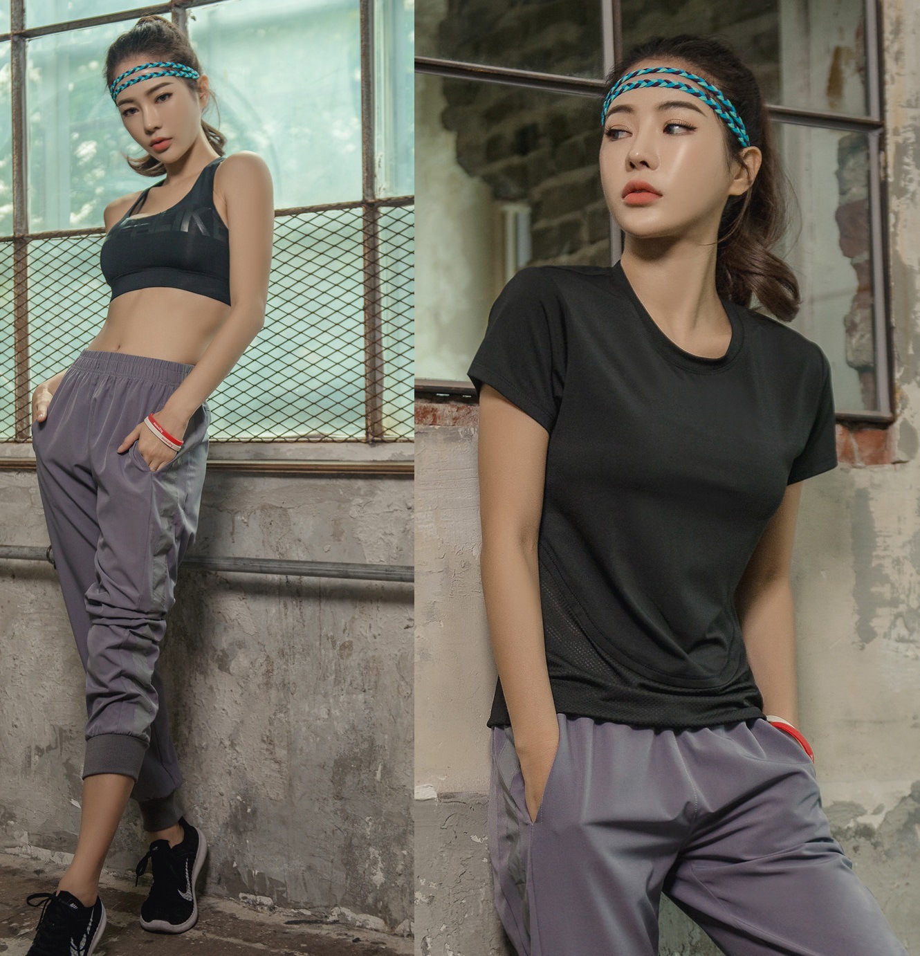 Summer new yoga suit three sets of beginner professional fitness sports bra short T-shirt long pants loose sexy