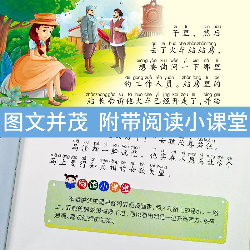 (Vocal reading of the fine) Green Mountain wall Anne's original copy of the original primary school pupil's version 12 3rd grade extracuroneers Full episode 6-7-10-year-old children's extracurgenical reading story books with pinyin XS