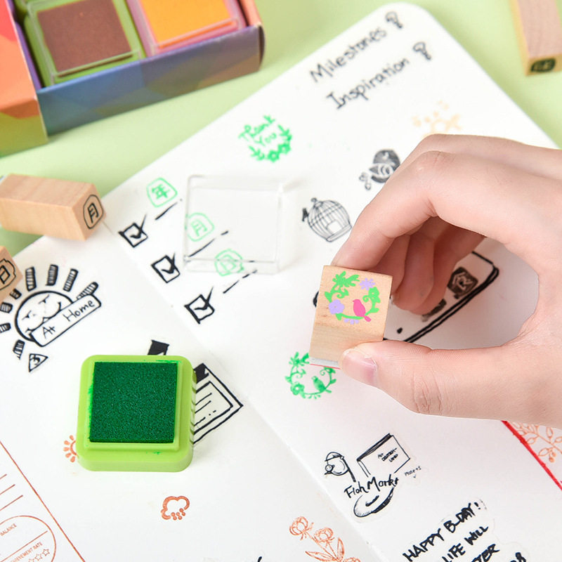 16-color set color ink mud student handbook children's finger painting seal partner decorative rubber stamp pad tool