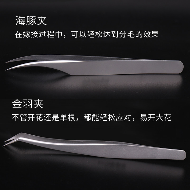 A pair of high-precision golden feather clips dolphin clips grafted eyelashes blooming tweezers clip beauty eyelashes special extended mouth