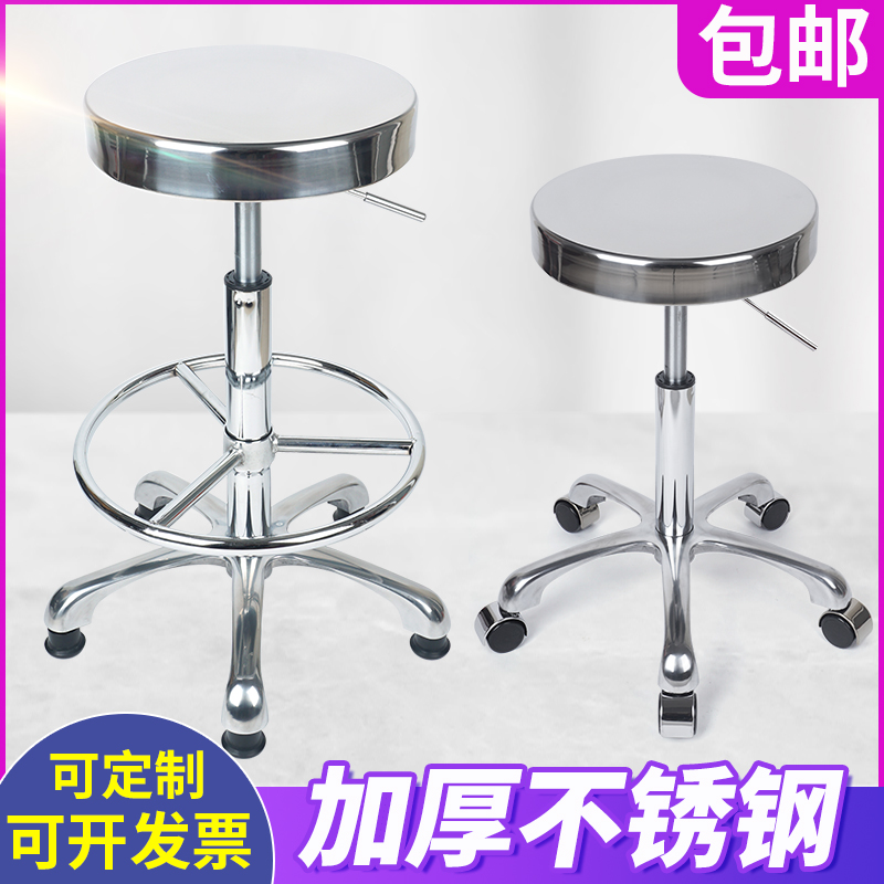 Thickened stainless steel lift round stool bar chair hairdressing lift stool laboratory production workshop work stool