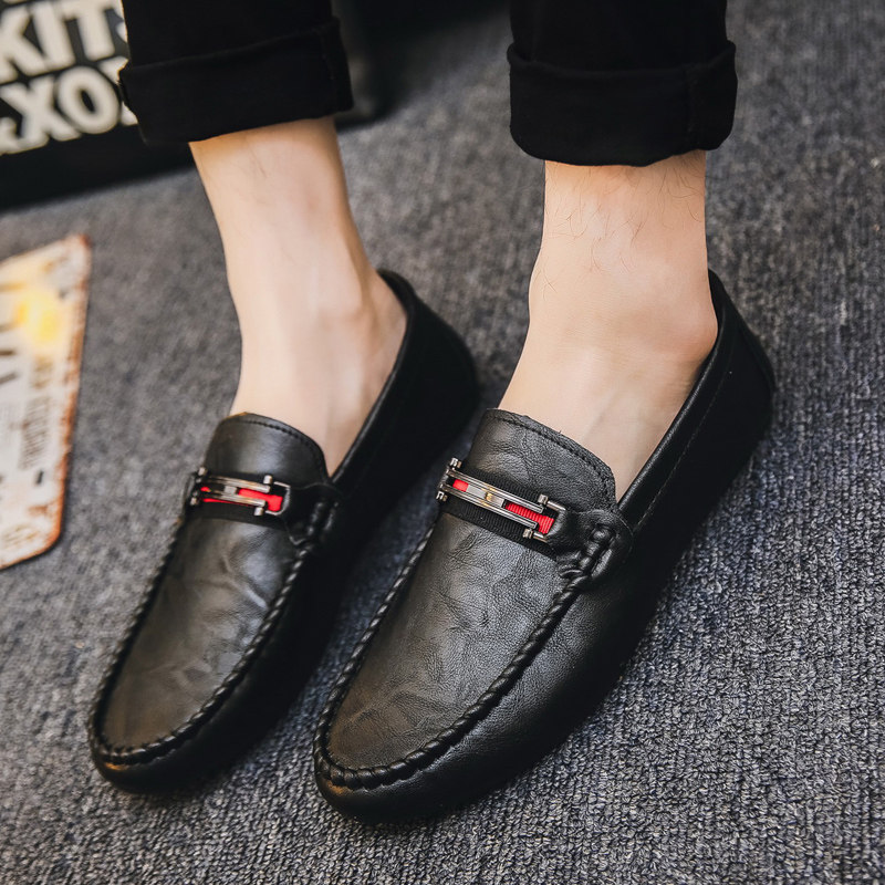 Spring bean-bean shoe men 2021 new Korean version trendy leather soft-bottom sloth shoes men's driving breathable leather shoes