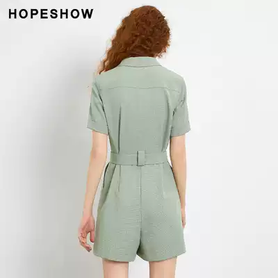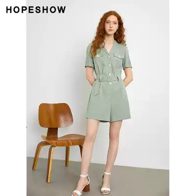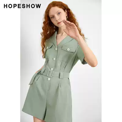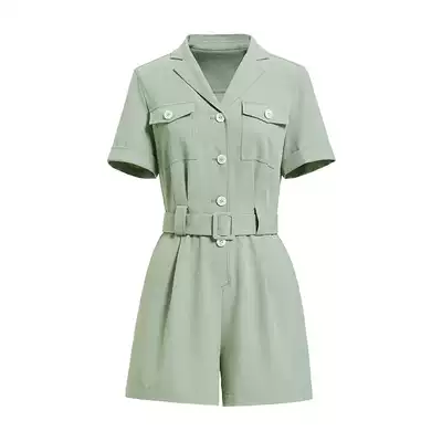 Red sleeve solid color casual pants summer new women's plaid lace-up waist single-breasted short sleeve one-piece shorts