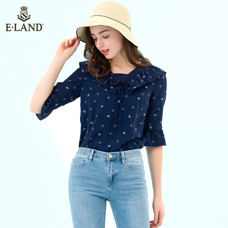 (Clearance sale)ELAND clothing love Korean version chic ruffle sweet forest Chiffon shirt female attachment