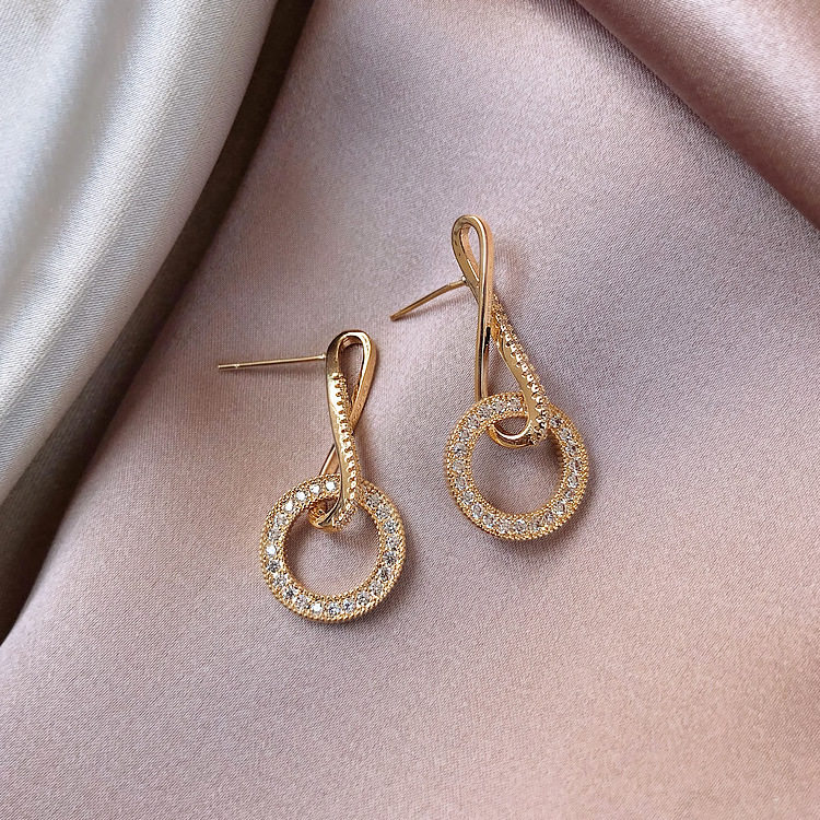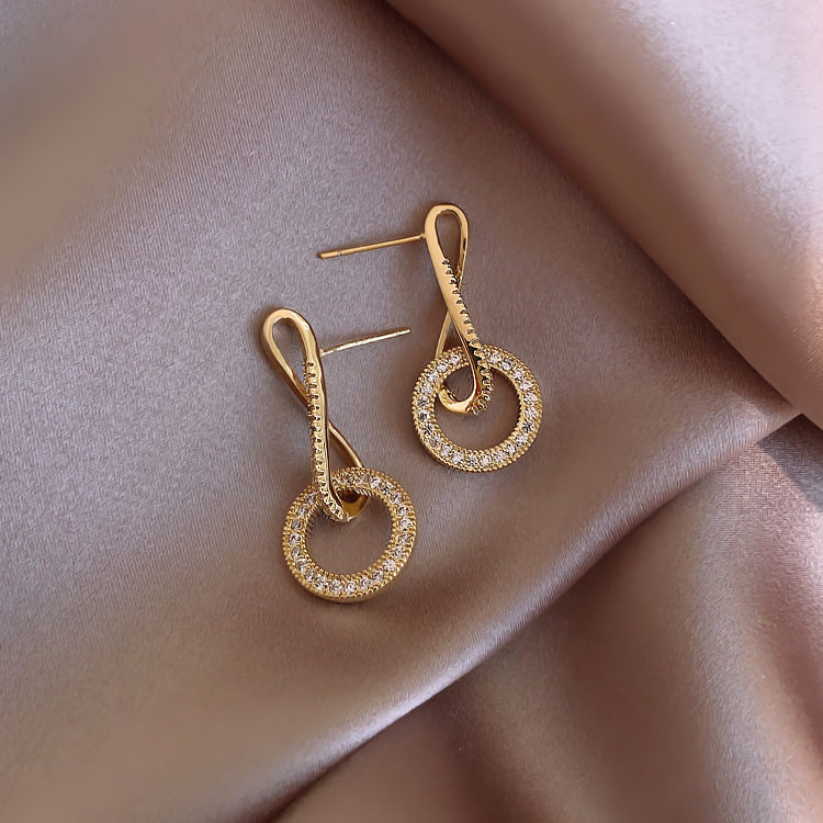 Korea Personality Design Sense Retro Metal Geometric Earrings 2022 New Tide Nets Red people super shiny earrings