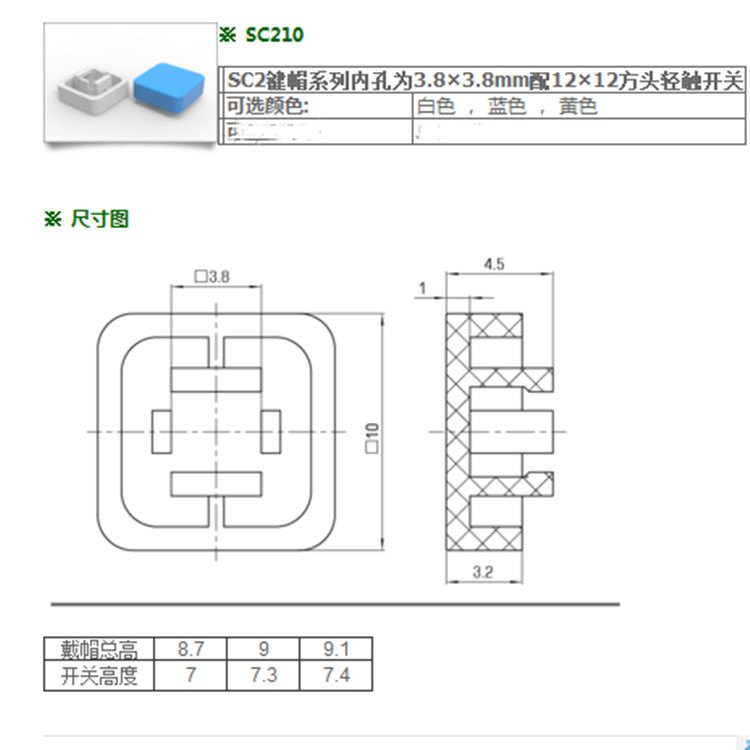 Switch button cap square 10*10*4 5 keystone cap inner diameter 3 8*3 8 with 12*12 square tap switch