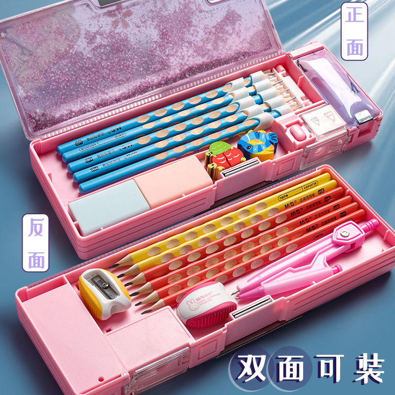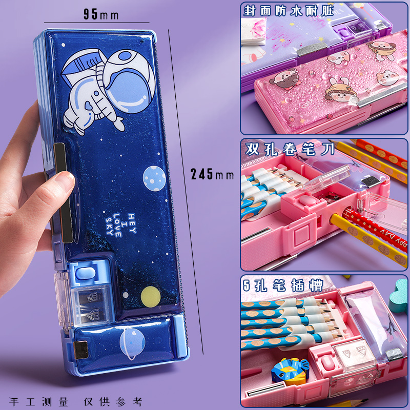 Sakura flowing yarn net red stationery box vibrato the same multi-functional cylindrical pencil case creative girls boys and girls cute ins large capacity pencil case cylinder children primary school students password pencil case trend