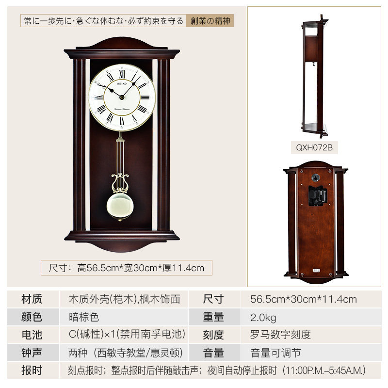 SEIKO Japan Seiko solid wood retro high-end Chinese atmospheric living room office hour music chimes wall clock