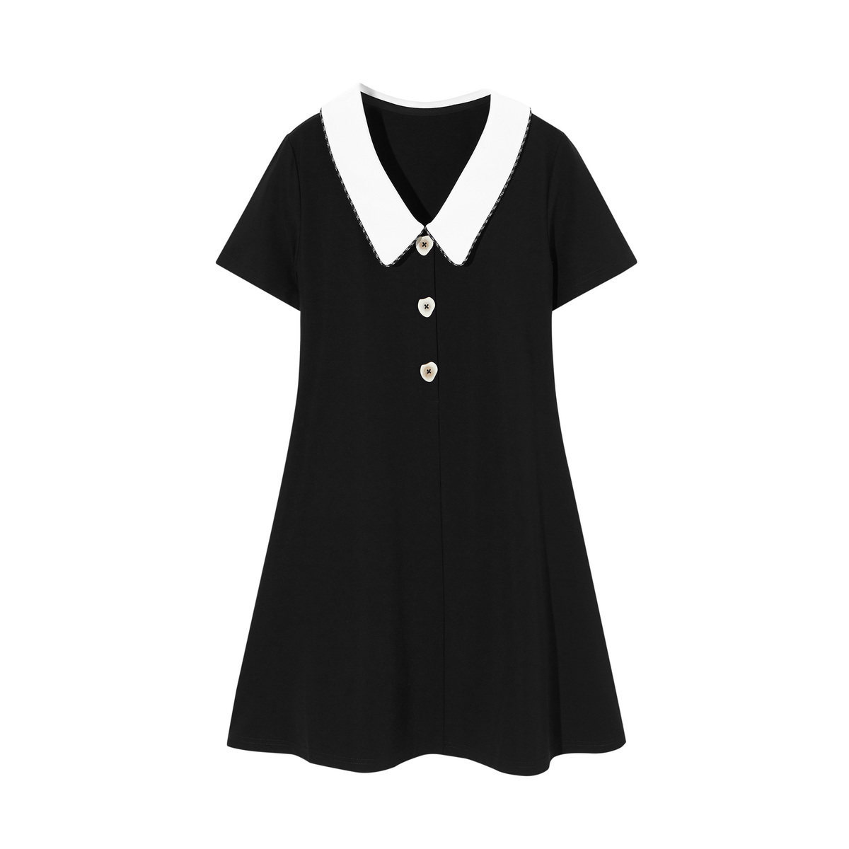 (Shopping mall with the same)Taiping bird lapel dress women's 2021 summer new waist short-sleeved French small black dress