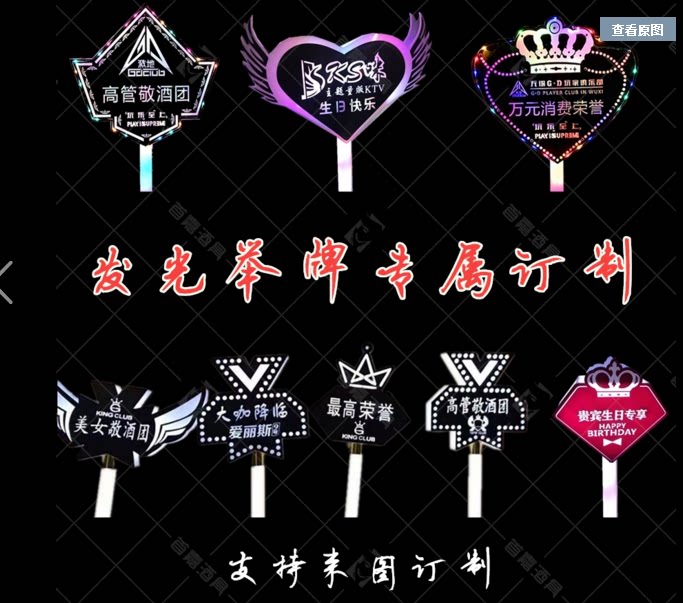 KTV bar LED light-emitting hand holding sign, the highest consumption sign, happy birthday, VIP guide sign, champagne scepter