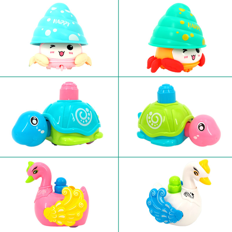 Shake sound children's baby press colorful crab train Turtle Swan child Pull back pressure toy car