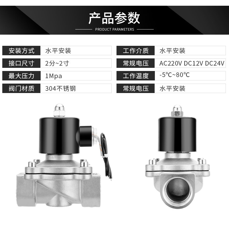 304 DN8 2 min AC220V 304 DN8 2 min DC12V 304 DN8 2 min DC24V 304 DN10 3 min AC220V 304 DN10 3 min DC12V 304 DN10 3 min DC24V 304 DN15 4 min AC220V 304 DN15 4 min DC12V 304 DN15 4 min DC24V 304 DN20 6 min AC220V 304 DN20 6 min DC12V 304 DN20 6 minutes DC24V 304 DN25 1 inch AC220V 304 DN25 1 inch DC12V 304 DN25 1 inch DC24V 304 DN32 1.2 inch AC220V 304 DN32 1.2 inch DC12V 304 DN32 1.2 inch DC24V 304 DN40 1.5 inch AC220V 304 DN40 1.5 inch DC12V 304 DN40 1.5" DC24V 304 DN50 2" AC220V 304 DN50 2 inch DC12V 304 DN50 2 inch DC24V