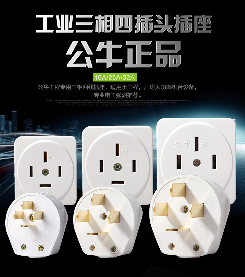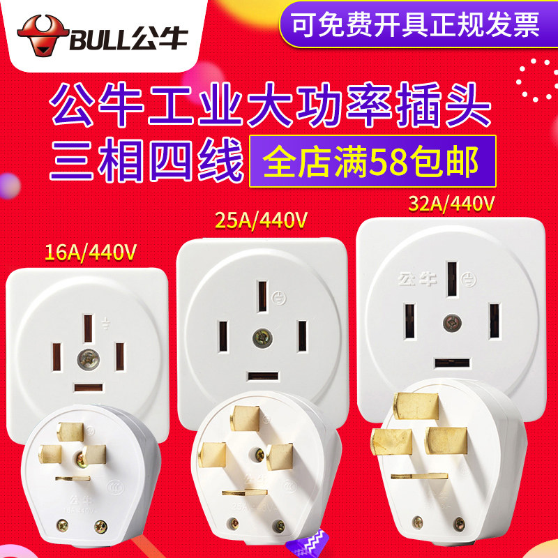 Bull plug high power 25A industrial plug 16A three phase four wire socket 32A 440V voltage 380V four feet
