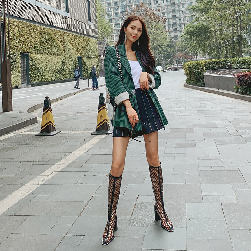 2021 spring and summer new boots high-top sandals long sexy cool boots women's net boots hollow high-heeled net red boots women