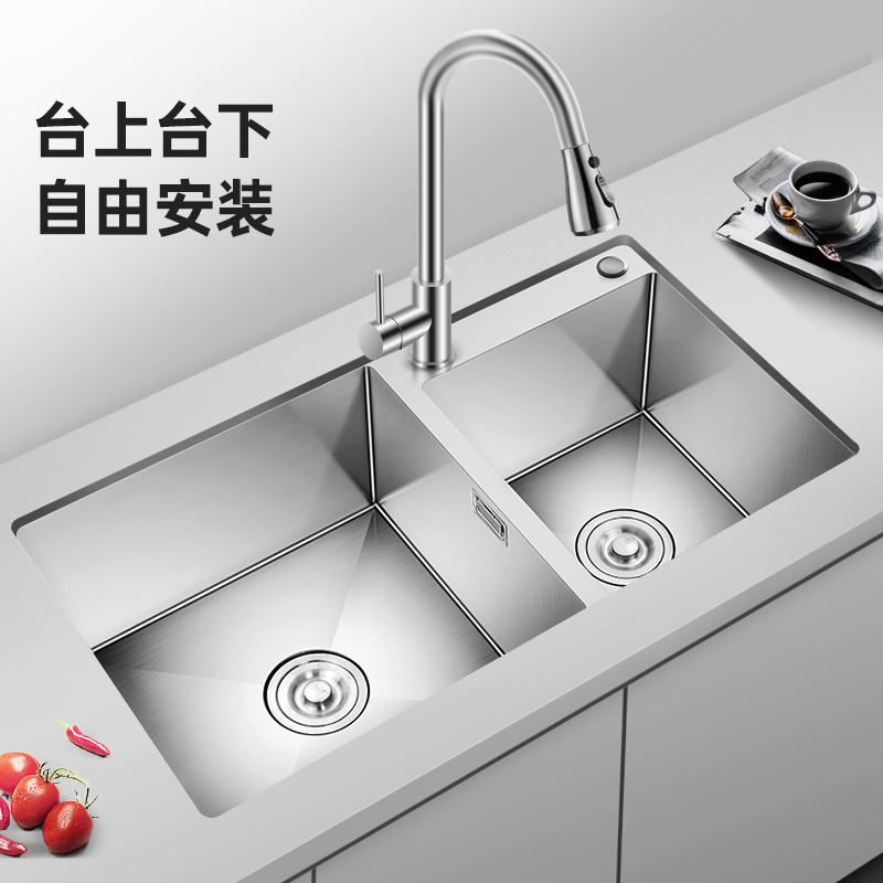 Sink package 304 hand thickened stainless steel large double sink Kitchen under the table panning basin sink dish sink household