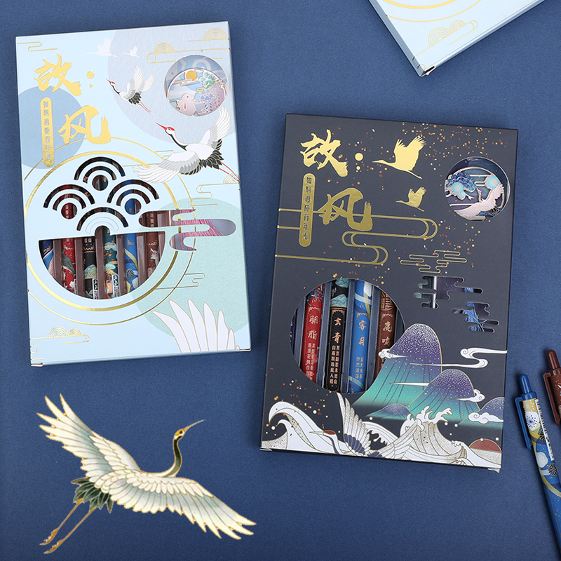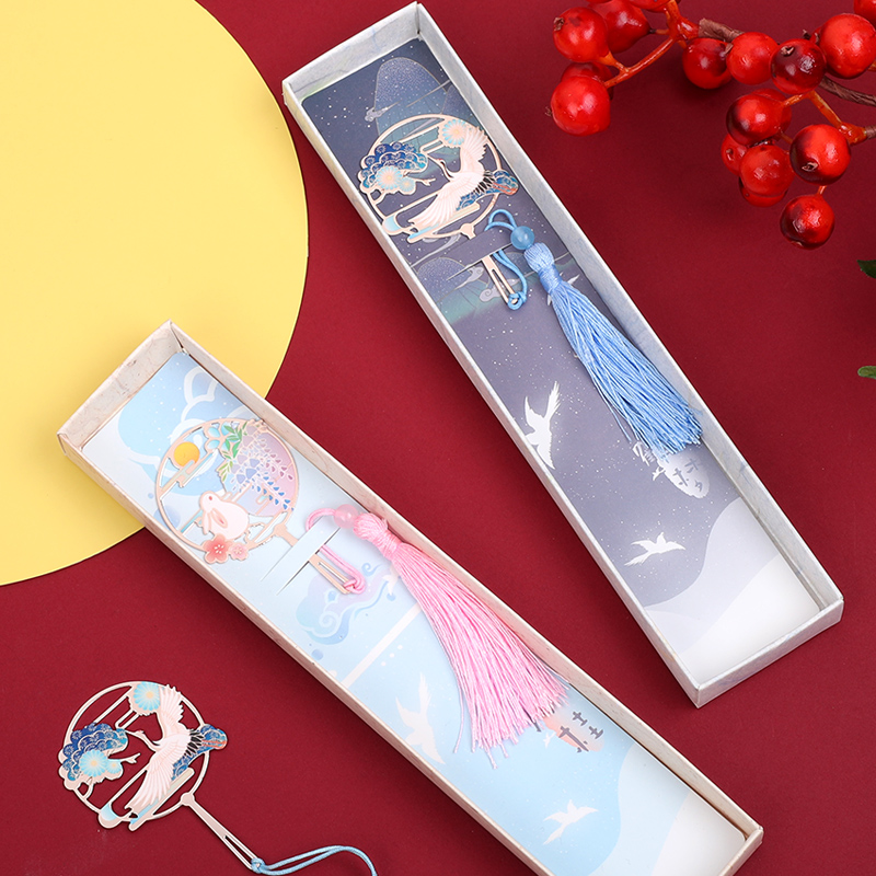 Bookmark Students Classical Chinese Style Metal Hollow Pen Gift Box Set Group Stamping Cultural Creation Bookmark Learning Stationery Bookmark Marking Art Exquisite Creative Cultural Creation Ancient Style Children's New Year Birthday Gift