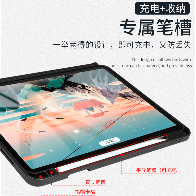 ipadPro2020 2021 protective sleeve with pen slot applicable air5 4 Apple 10 9 flat 12 9 computer 11 inch silicone anti-fall leather jacket magnetic penci