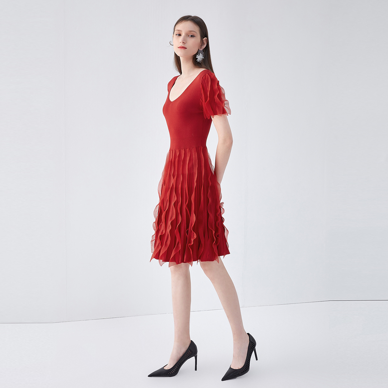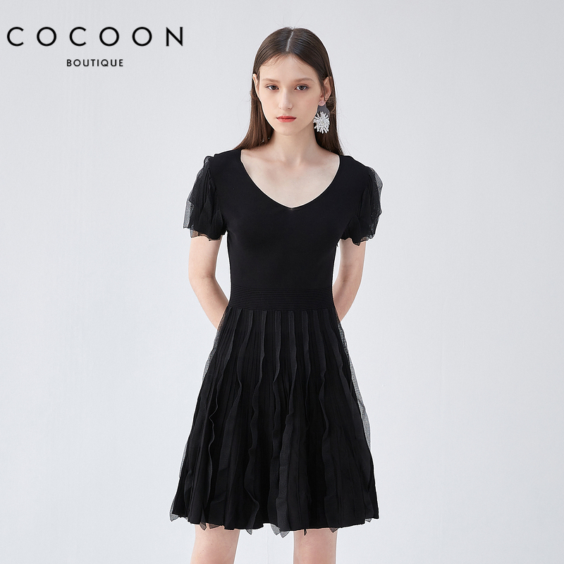 COCOON Cocoa Ney Mall with the same paragraph 2022 Summer new women's clothing Korean minimalist web yarn Knitted Foreign Dress