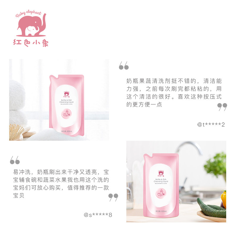 Red Baby Elephant Bottle Cleaner Replenish Baby Bottle Wash Liquid Baby Clean Fruit & Vegetable Cleaner 500ml