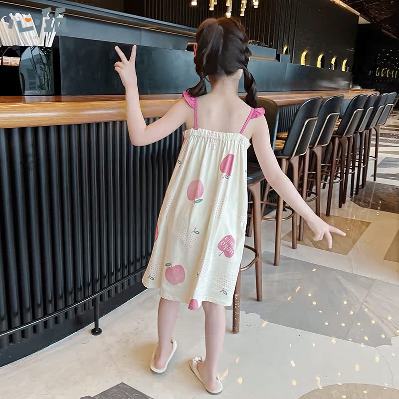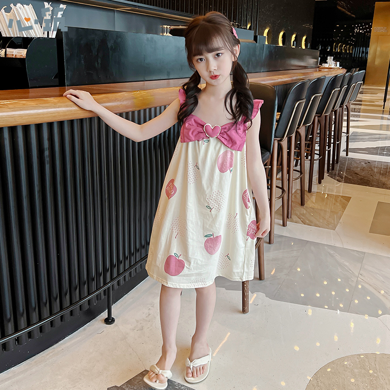 Girls' nightdress children's pajamas summer thin medium big kids cotton suspender skirt girl princess style baby parent-child