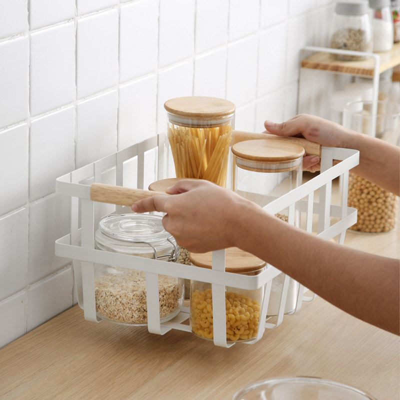 Japanese kitchen household seasoning bowl Tray storage rack cosmetics sundries storage basket desktop storage basket bowl rack metal