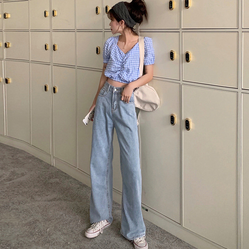 Summer thin section 2022 New small pair of pants High waist display slim jeans female summer straight cylinder loose broadlegged pants
